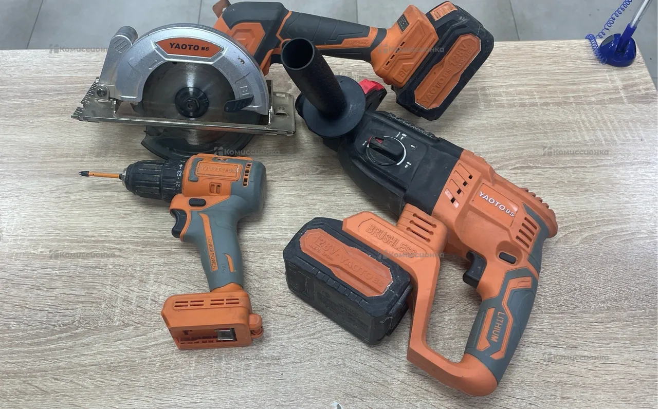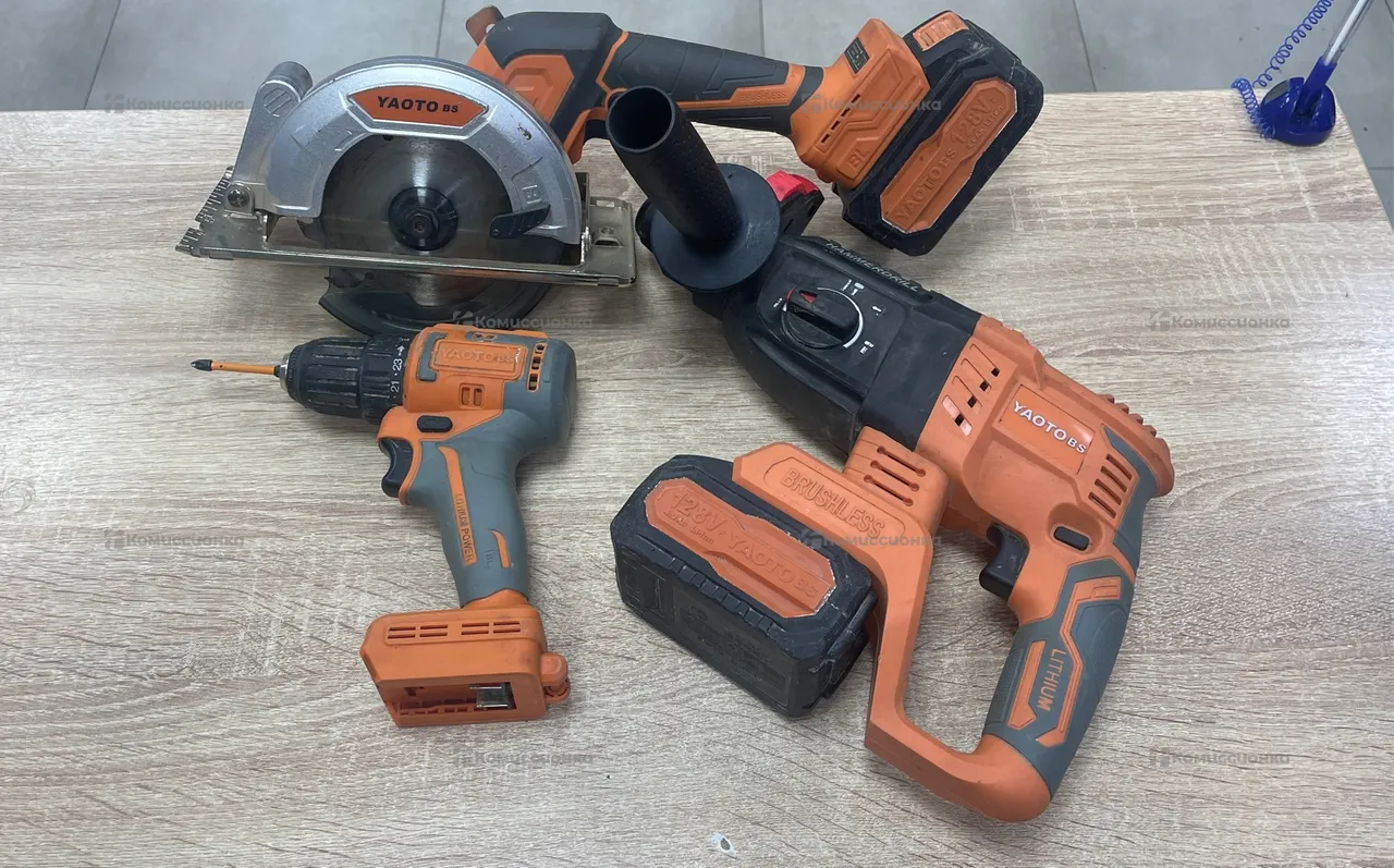 В комплекте дисковая пила, перфоратор и шуруповерт, З/У и 2 АКБ
